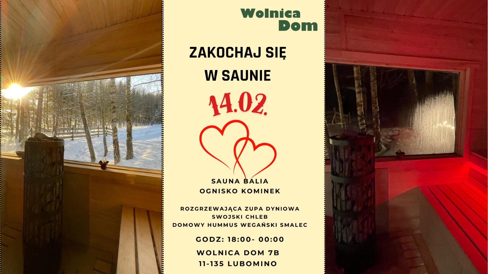 W Walentynki zapraszamy Cię na wyjątkową noc saunową, w której miłość spotyka się z uważnością, a ciepło sauny prowadzi do głębokiego relaksu i kontaktu z samym sobą.